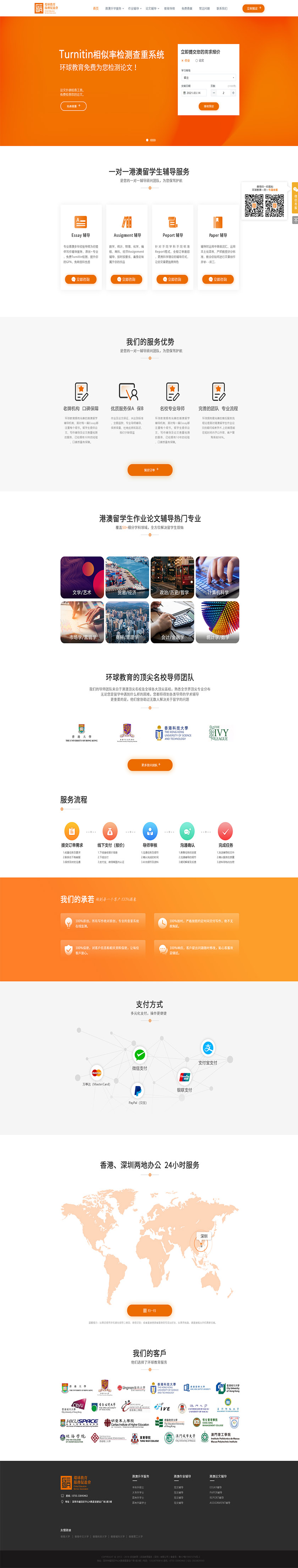 Project Description 环球教育拥有完善的港澳留学辅导机制,面对每一篇Essay都注重每个细节。留学生提供论文、写作辅导及论文查重检测的服务,已经拥有10年的经验,口碑质量有保障。 Official website address 台州http://essay.hkyauka.com/index.asp I want to share